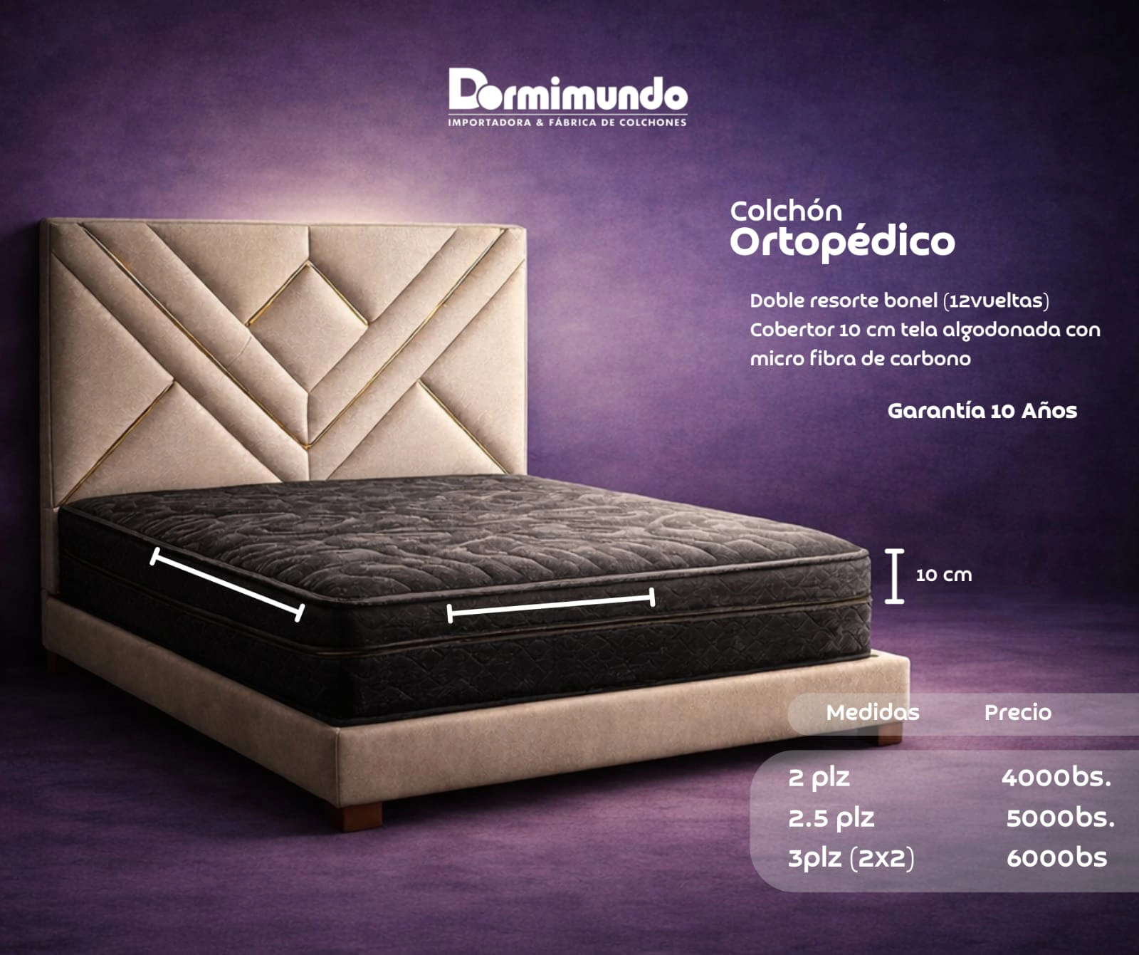 ![Colchón Ortopedico Resortes Pocket algodonado [1.40x 1.90metros] Negro](https://dormimundo-bo.com/wp-content/uploads/2026/03/Colchon-Ortopedico-Resortes-Pocket-algodonado-300x300.webp)